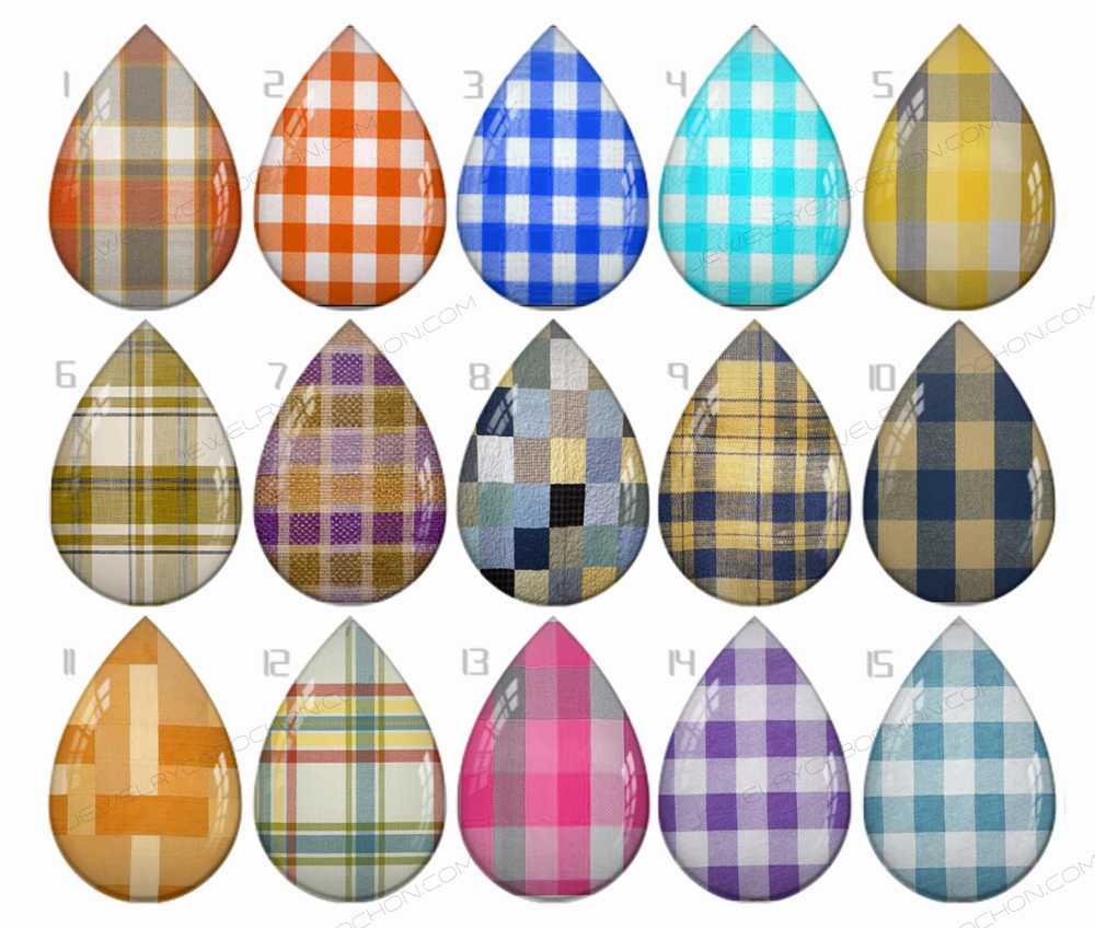 Handmade Teardrop Photo Glass Cabochons Checkered geometric B179