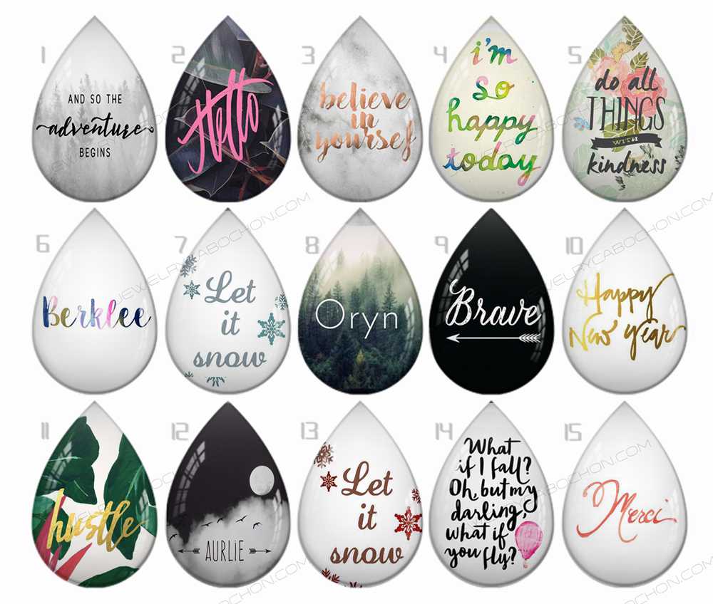 Handmade Teardrop Photo Glass Cabochons pattern B640