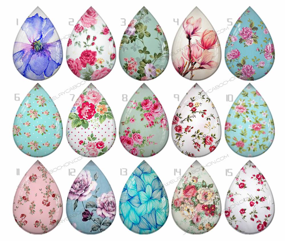 Handmade Teardrop Photo Glass Cabochons pattern flower 808 B