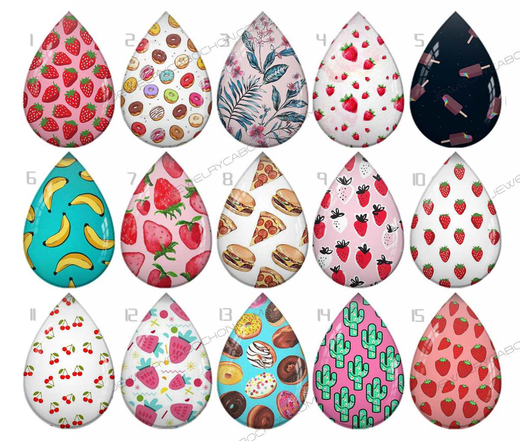 Handmade Teardrop Photo Glass Cabochons pattern geometric 714