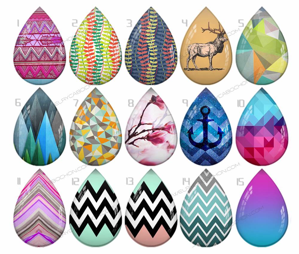 Handmade Teardrop Photo Glass Cabochons pattern geometric 716 B