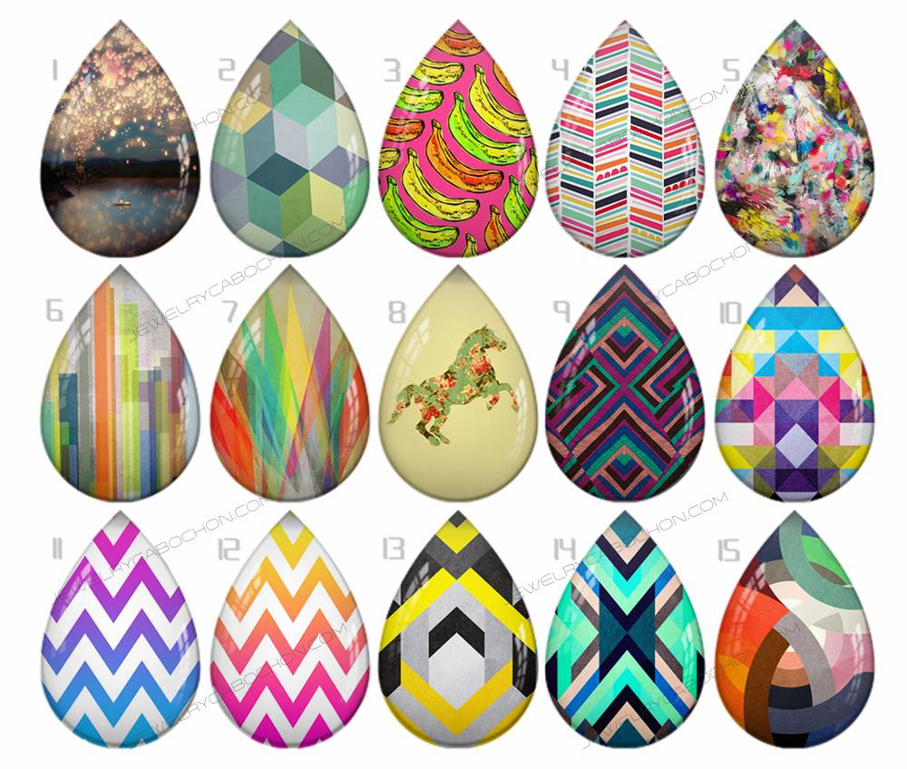 Handmade Teardrop Photo Glass Cabochons pattern geometric 717 B