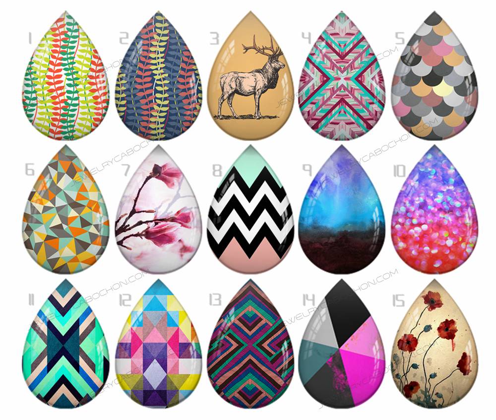 Handmade Teardrop Photo Glass Cabochons pattern geometric 718 B