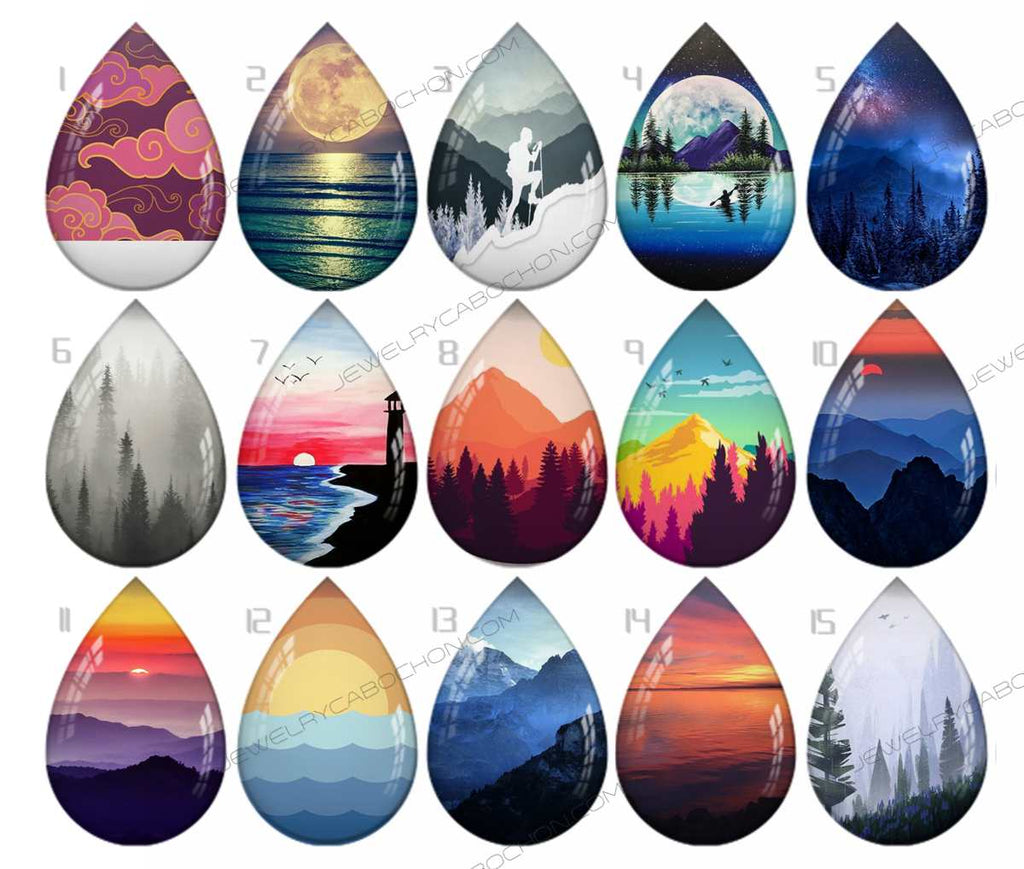 Handmade Teardrop Photo Glass Cabochons pattern geometric 738
