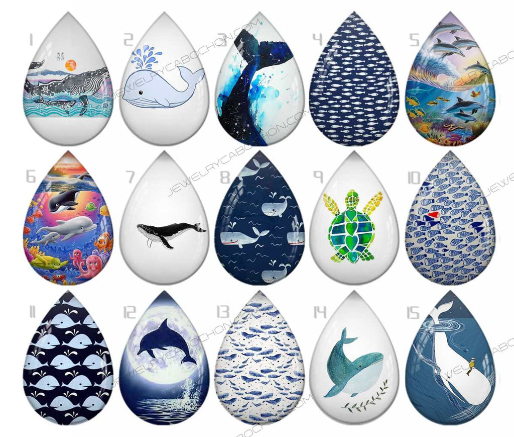 Handmade Teardrop Photo Glass Cabochons pattern geometric 742