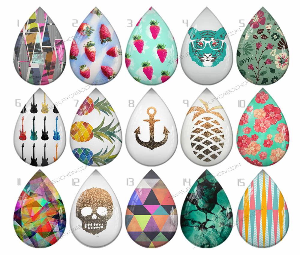 Handmade Teardrop Photo Glass Cabochons pattern geometric 743 B