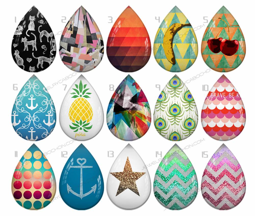 Handmade Teardrop Photo Glass Cabochons pattern geometric 744 B