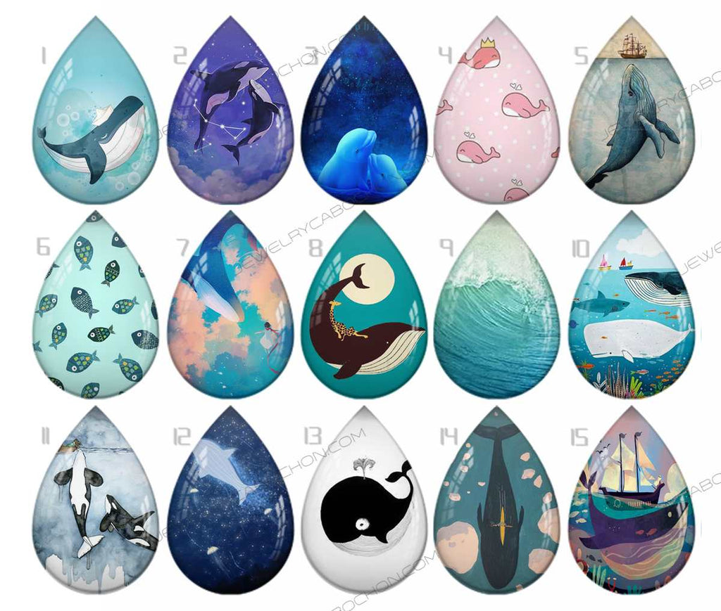 Handmade Teardrop Photo Glass Cabochons pattern geometric 747