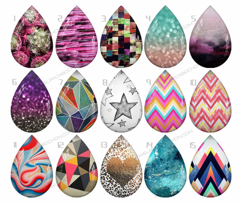 Handmade Teardrop Photo Glass Cabochons pattern geometric 751 B