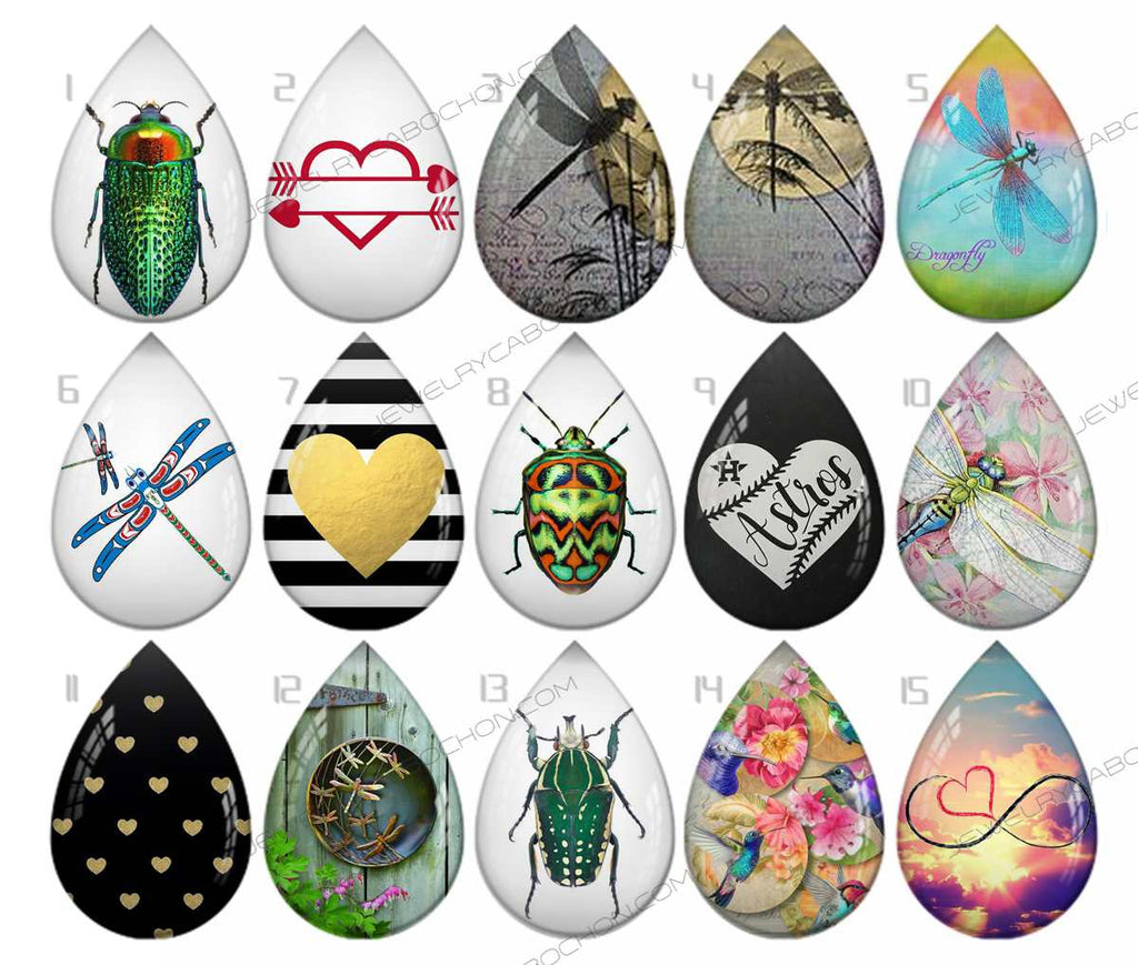 Handmade Teardrop Photo Glass Cabochons pattern geometric 752