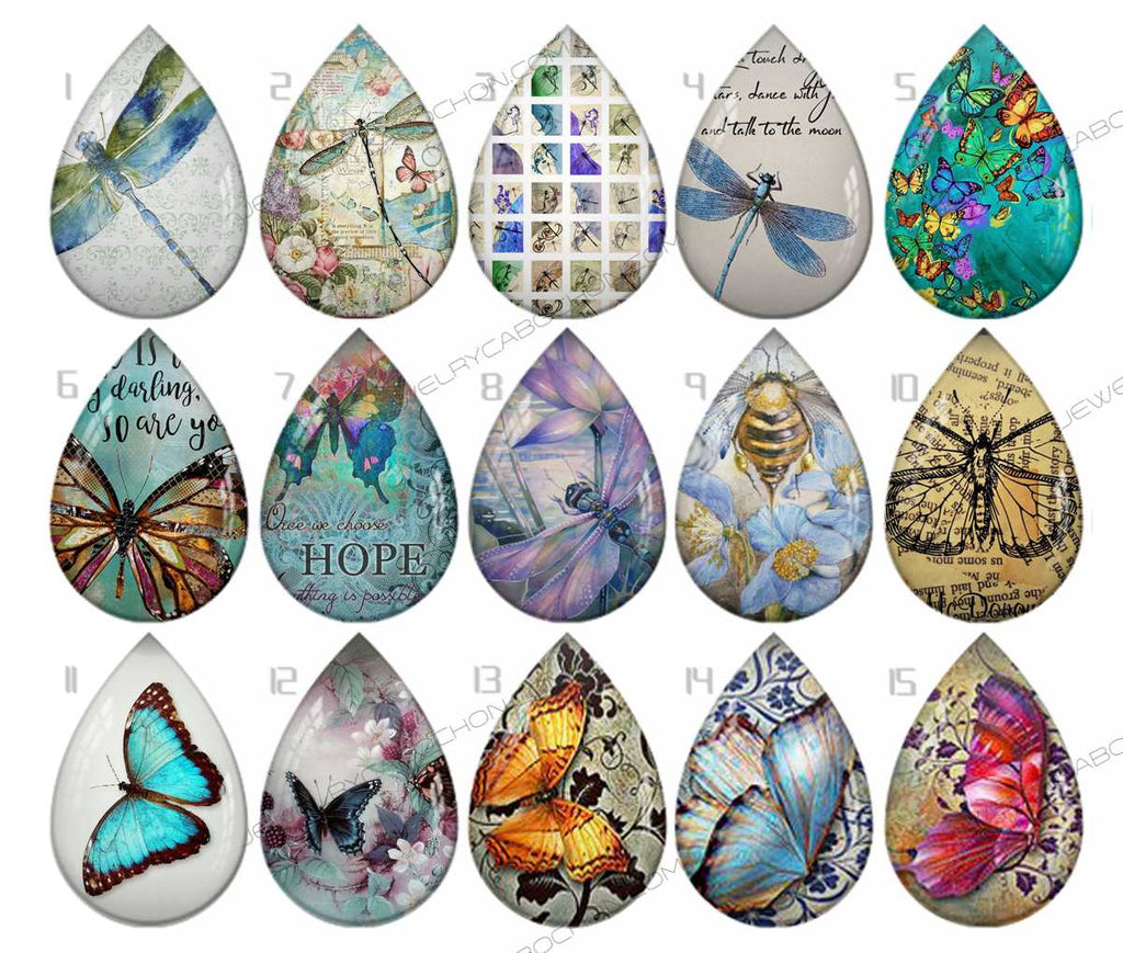 Handmade Teardrop Photo Glass Cabochons pattern geometric 756