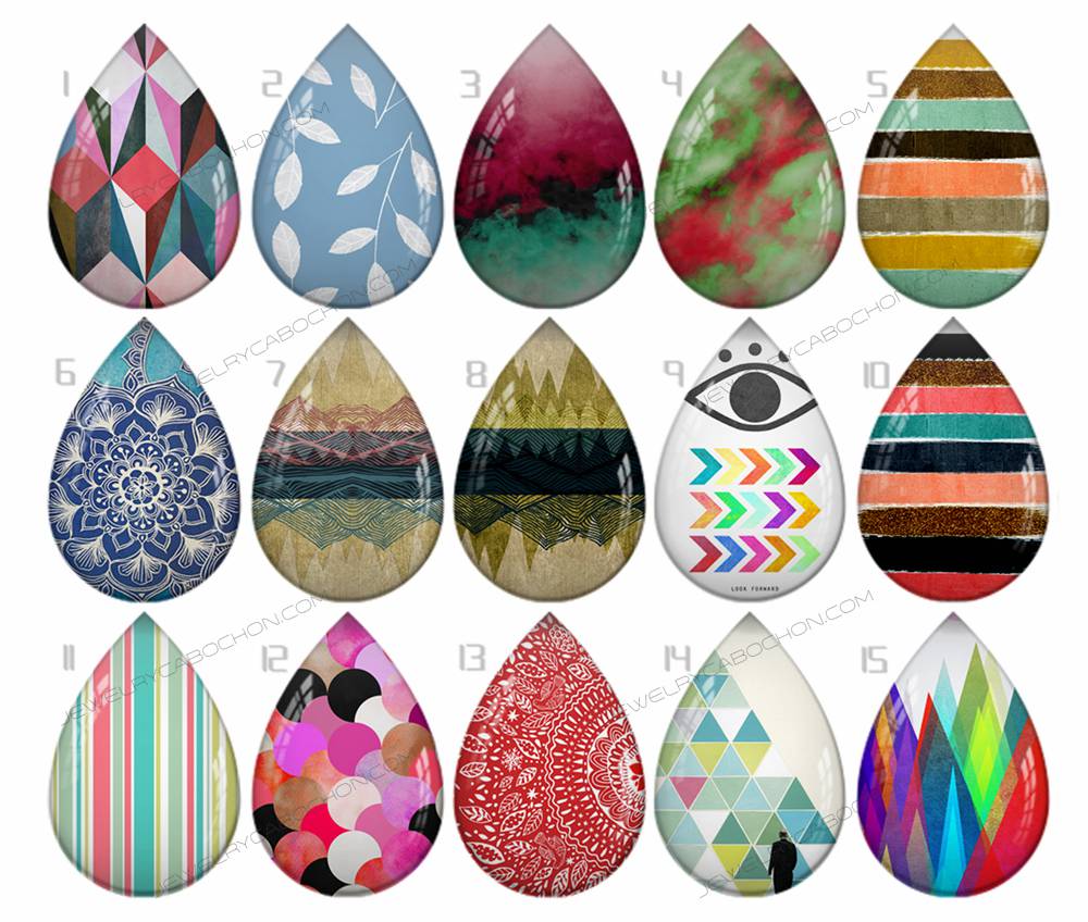 Handmade Teardrop Photo Glass Cabochons pattern geometric 758 B