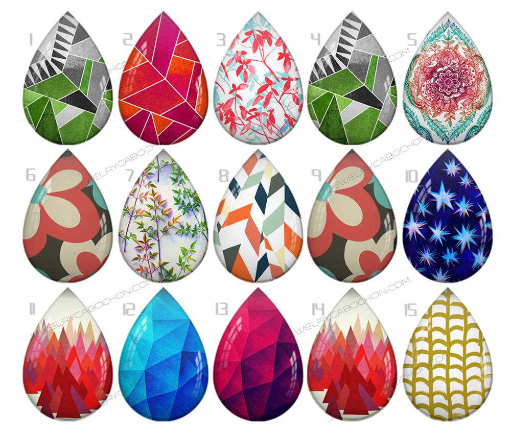 Handmade Teardrop Photo Glass Cabochons pattern geometric 773 B