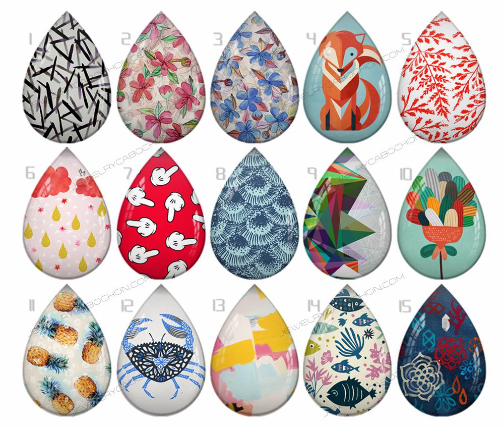 Handmade Teardrop Photo Glass Cabochons pattern geometric 775 B