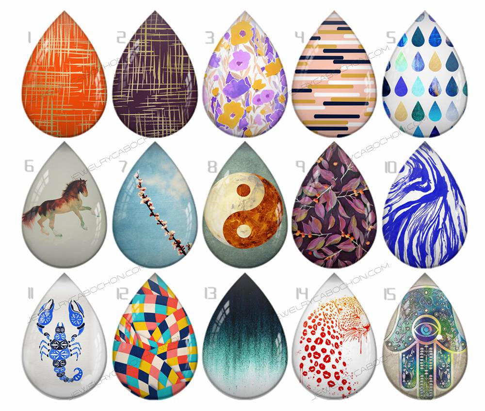 Handmade Teardrop Photo Glass Cabochons pattern geometric 777 B