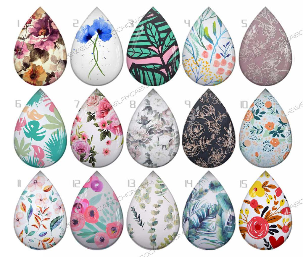 Handmade Teardrop Photo Glass Cabochons pattern geometric 778