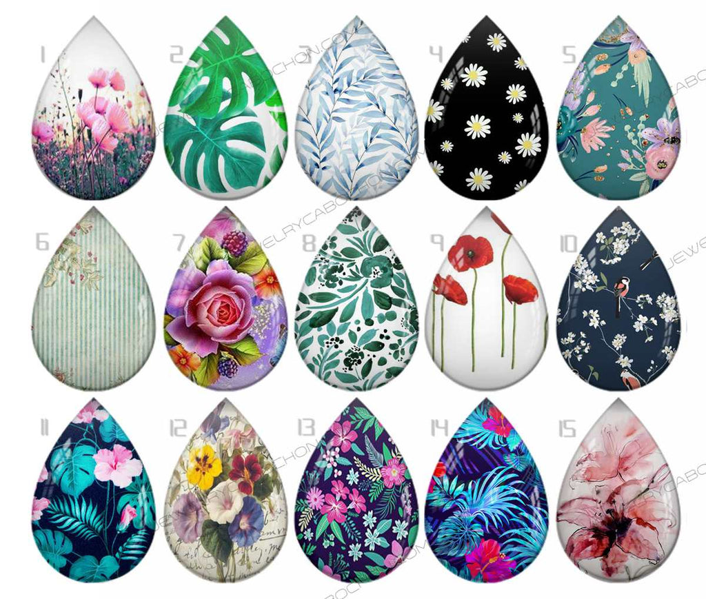 Handmade Teardrop Photo Glass Cabochons pattern geometric 782