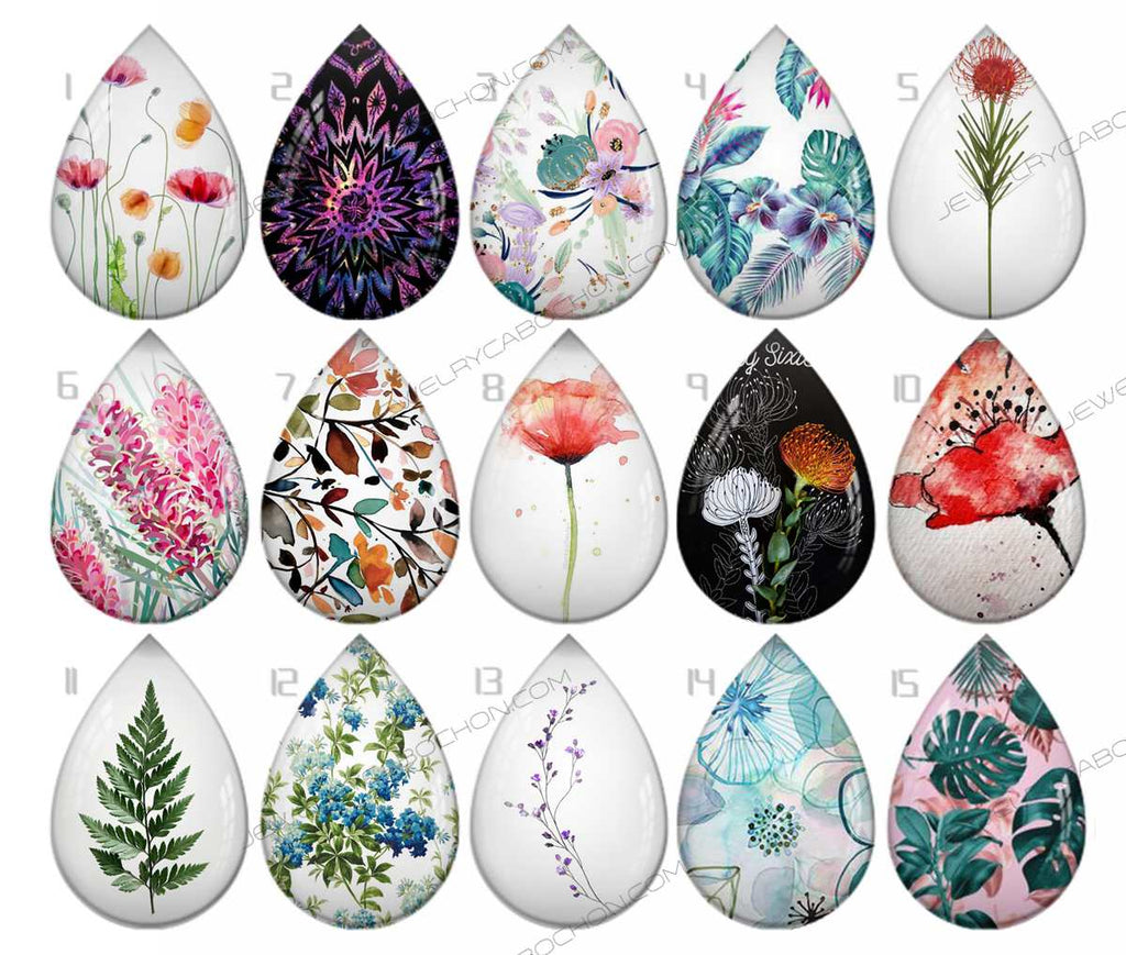 Handmade Teardrop Photo Glass Cabochons pattern geometric 783