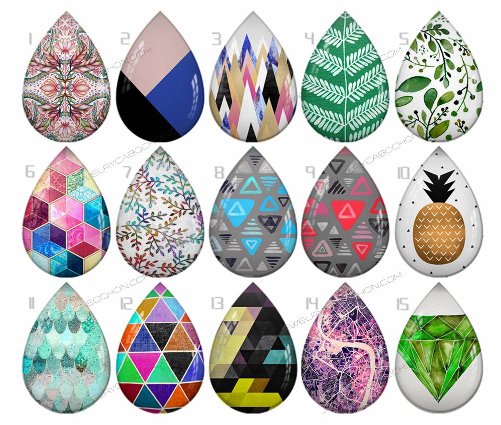 Handmade Teardrop Photo Glass Cabochons pattern geometric 783 B