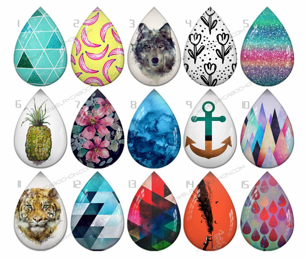 Handmade Teardrop Photo Glass Cabochons pattern geometric 784 B