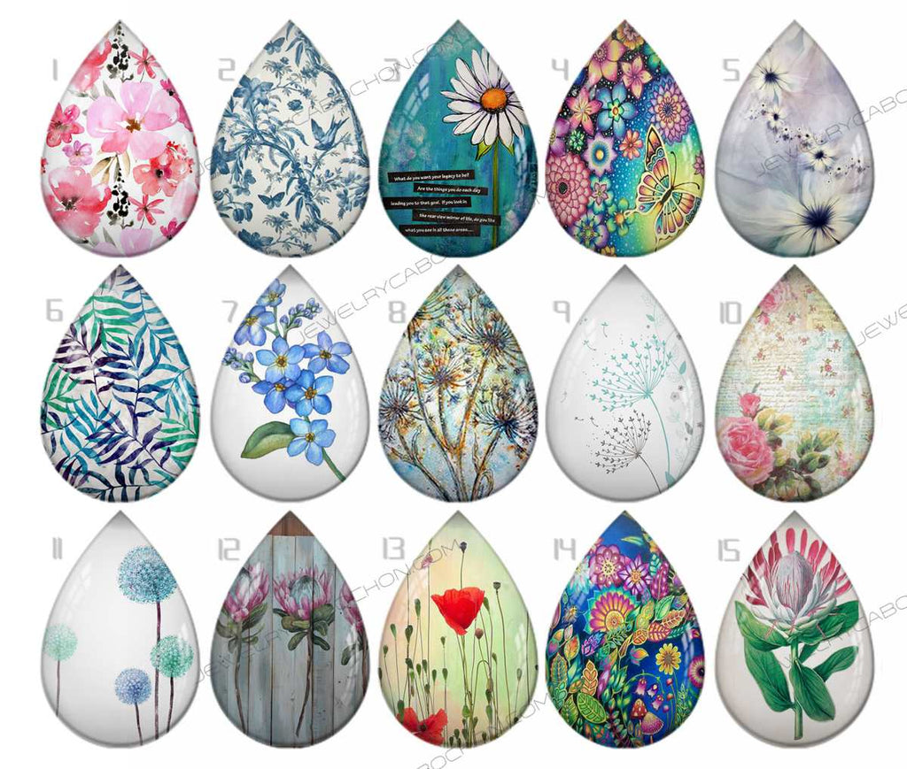 Handmade Teardrop Photo Glass Cabochons pattern geometric 789