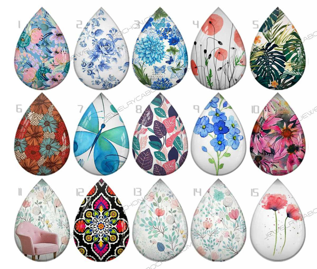 Handmade Teardrop Photo Glass Cabochons pattern geometric 791
