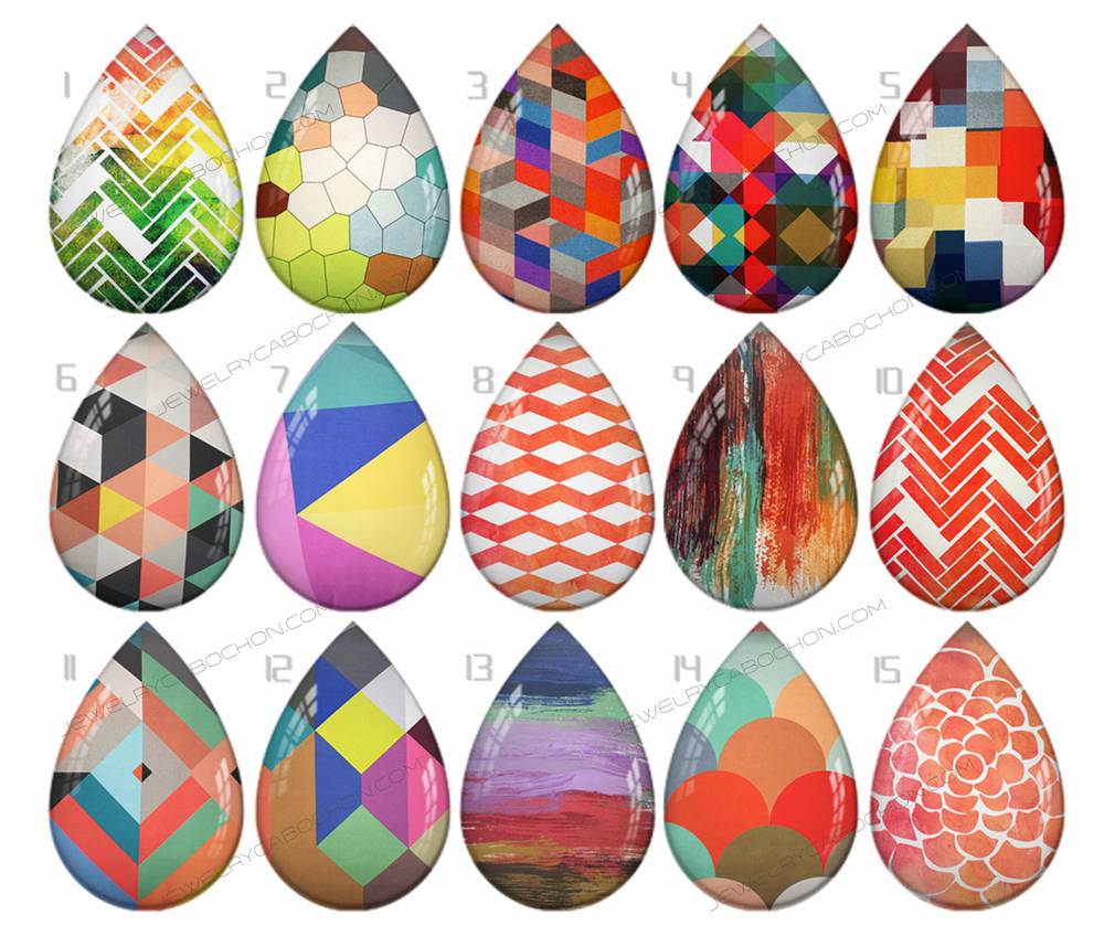 Handmade Teardrop Photo Glass Cabochons pattern geometric 792 B