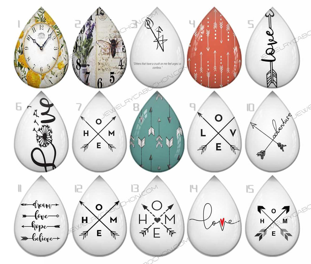 Handmade Teardrop Photo Glass Cabochons pattern geometric 814
