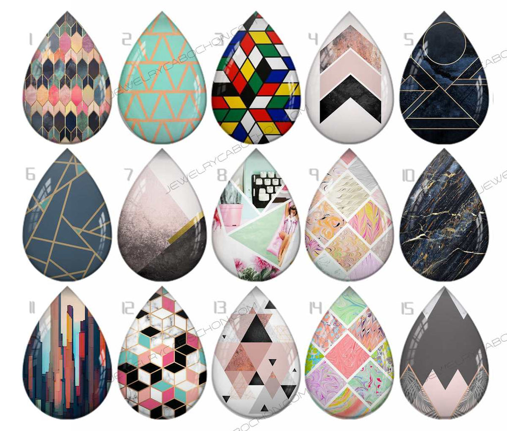 Handmade Teardrop Photo Glass Cabochons pattern geometric 827