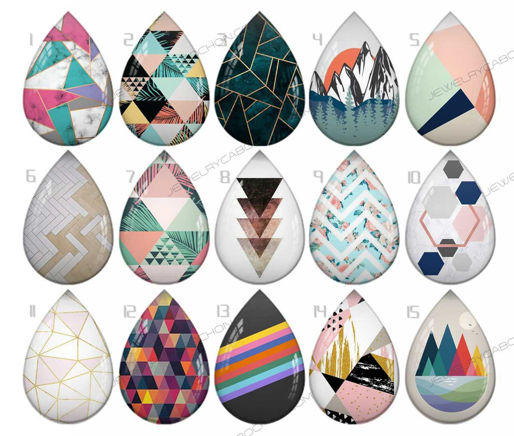 Handmade Teardrop Photo Glass Cabochons pattern geometric 832