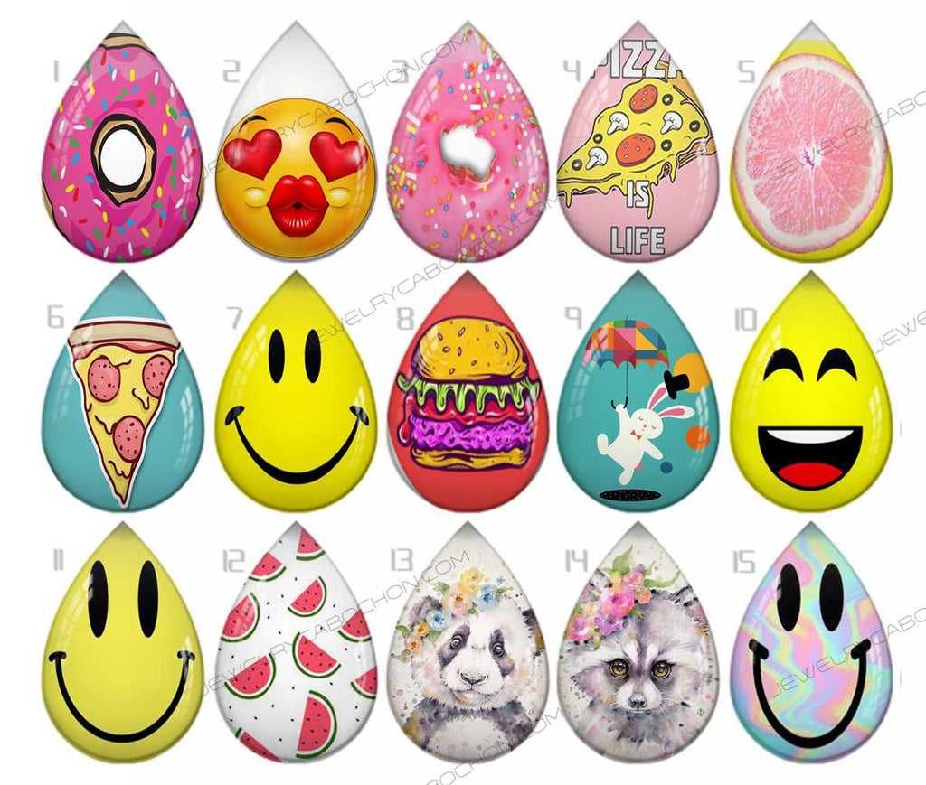 Handmade Teardrop Photo Glass Cabochons pattern geometric 835