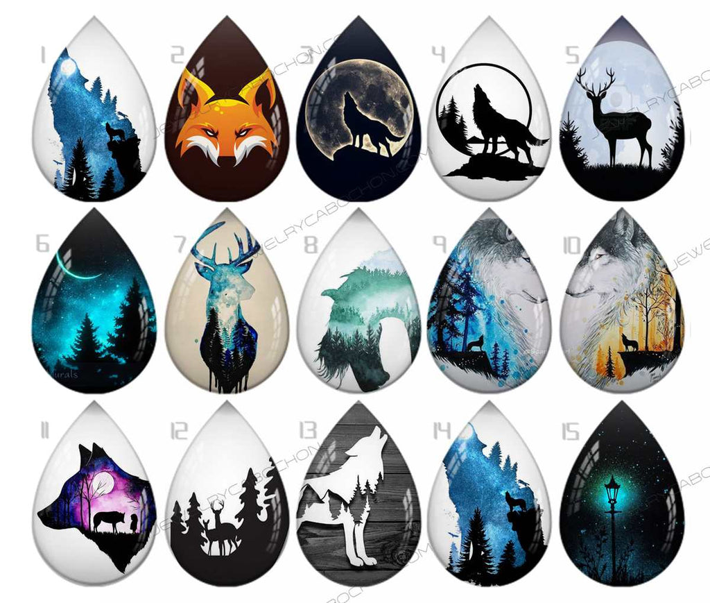 Handmade Teardrop Photo Glass Cabochons pattern geometric 845