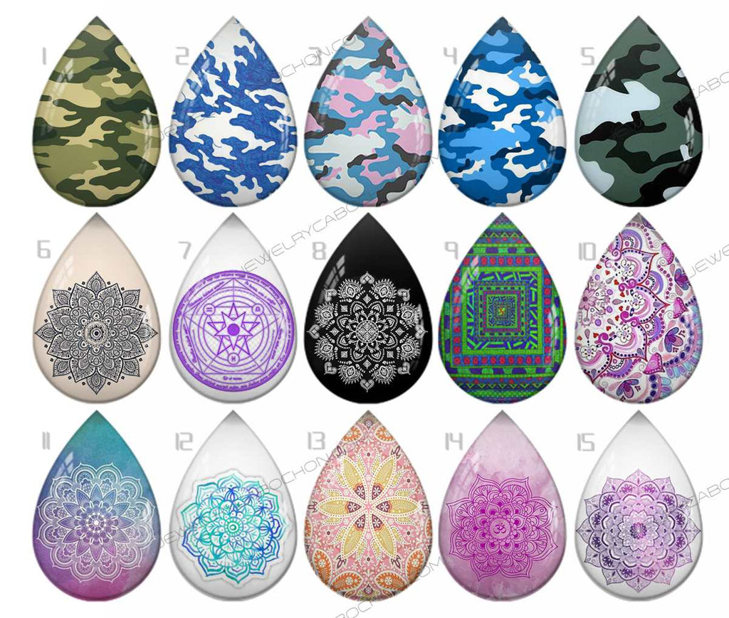 Handmade Teardrop Photo Glass Cabochons pattern geometric 859