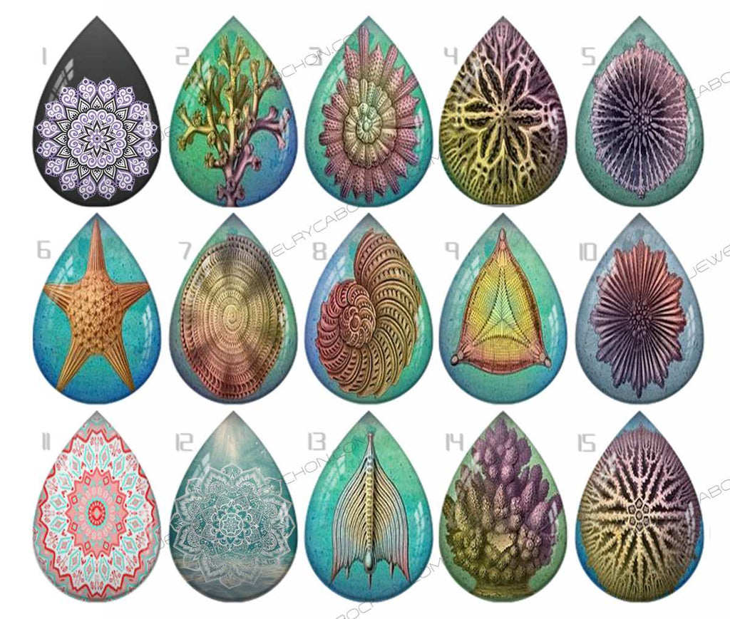 Handmade Teardrop Photo Glass Cabochons pattern geometric 860