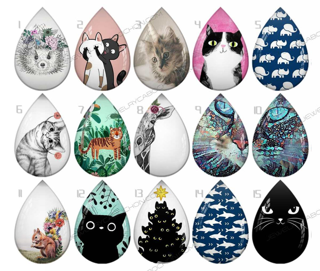 Handmade Teardrop Photo Glass Cabochons pattern geometric 869