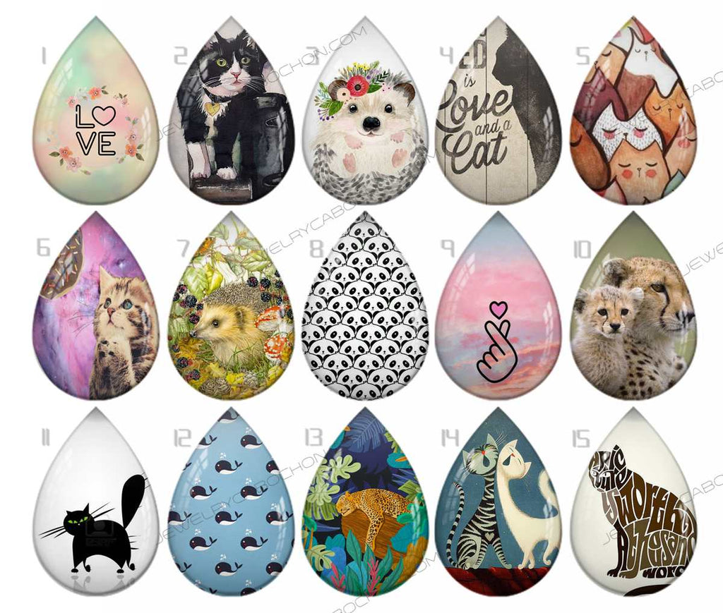Handmade Teardrop Photo Glass Cabochons pattern geometric 871