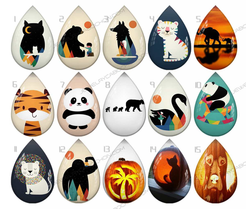 Handmade Teardrop Photo Glass Cabochons pattern geometric 878