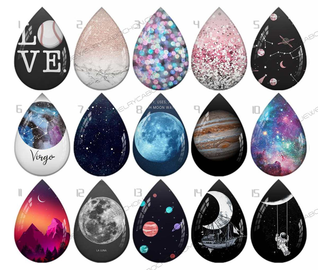 Handmade Teardrop Photo Glass Cabochons pattern geometric 905