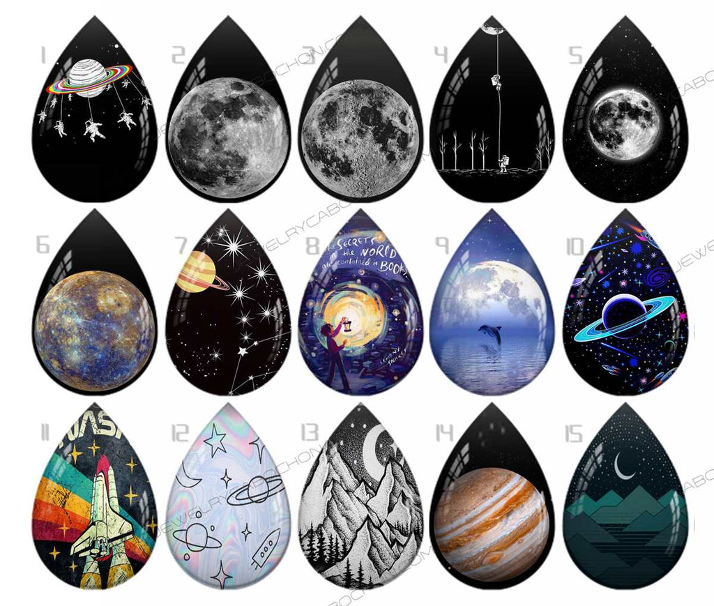 Handmade Teardrop Photo Glass Cabochons pattern geometric 906