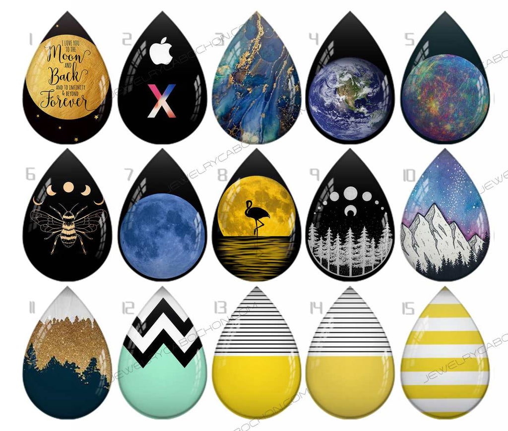 Handmade Teardrop Photo Glass Cabochons pattern geometric 907