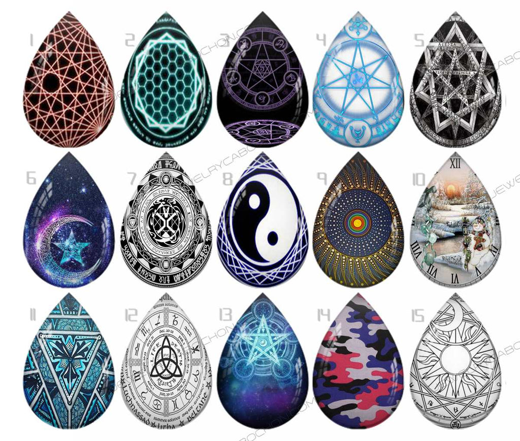 Handmade Teardrop Photo Glass Cabochons pattern geometric 910