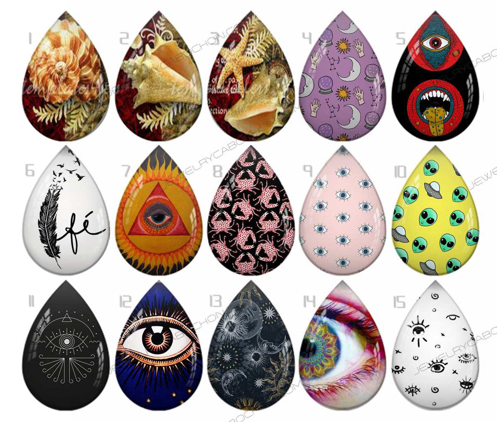 Handmade Teardrop Photo Glass Cabochons pattern geometric 915