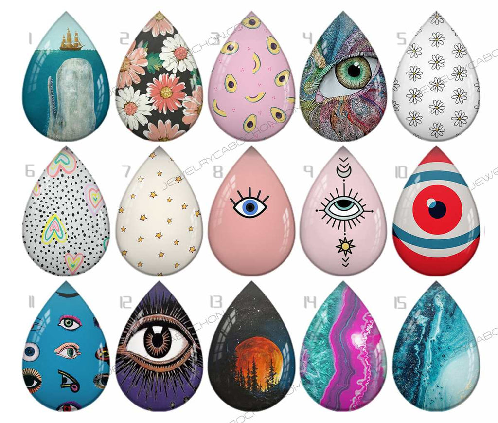 Handmade Teardrop Photo Glass Cabochons pattern geometric 919