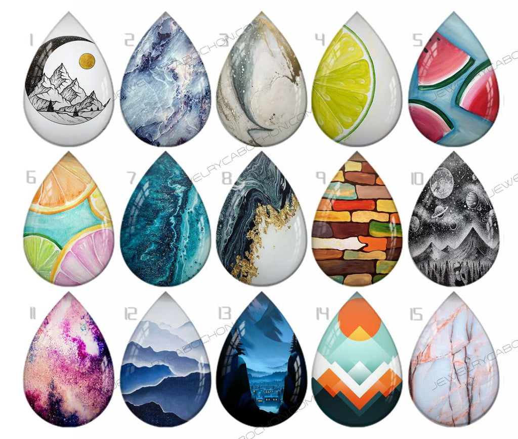 Handmade Teardrop Photo Glass Cabochons pattern geometric 921