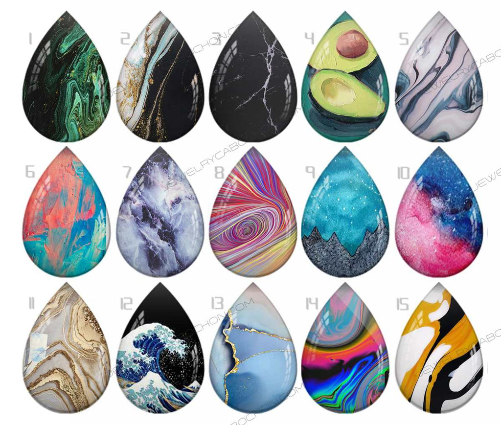 Handmade Teardrop Photo Glass Cabochons pattern geometric 925