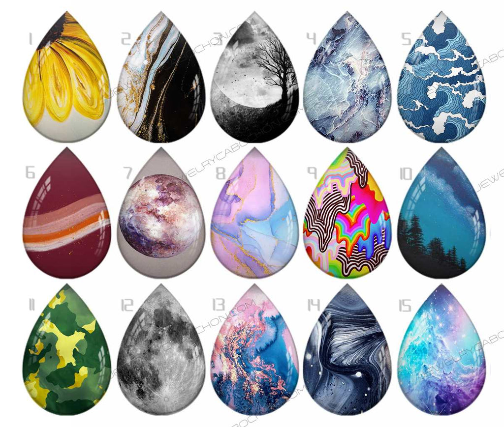 Handmade Teardrop Photo Glass Cabochons pattern geometric 926