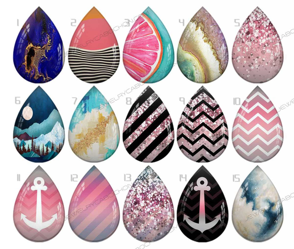Handmade Teardrop Photo Glass Cabochons pattern geometric 927