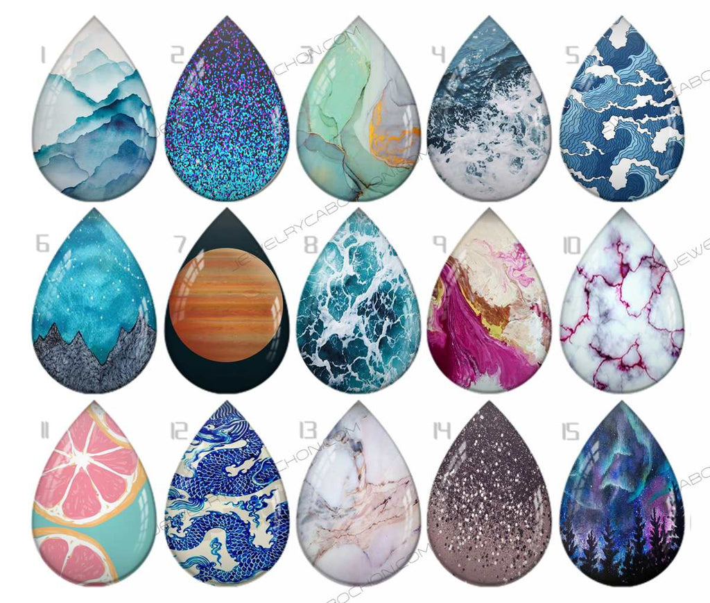 Handmade Teardrop Photo Glass Cabochons pattern geometric 928