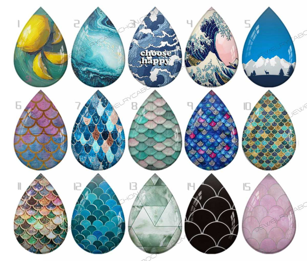 Handmade Teardrop Photo Glass Cabochons pattern geometric 930