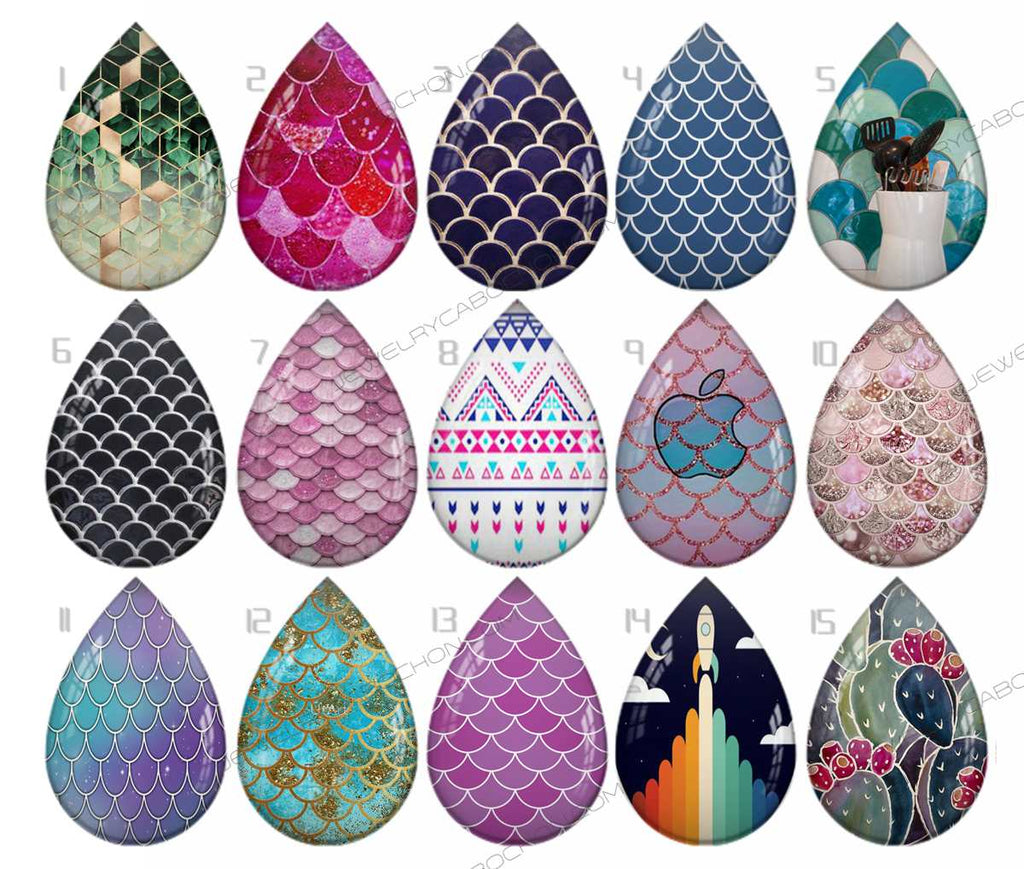 Handmade Teardrop Photo Glass Cabochons pattern geometric 933